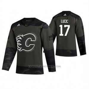 Camiseta Hockey Calgary Flames Flames Milan Lucic 2019 Veterans Day Camuflaje