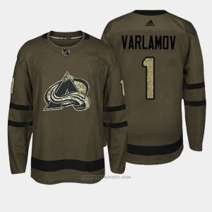 Inicio ::  Camiseta NHL ::  Colorado Avalanche ::  Camiseta Hockey Hombre Colorado Avalanche 1 Semyon Varlamov Verde Salute To Service