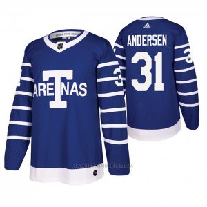 Camiseta Hockey Toronto Maple Leafs Frederik Andersen Throwback Autentico Azul