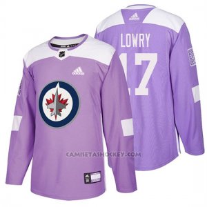 Camiseta Winnipeg Jets Adam Lowry Hockey Fights Cancer Violeta